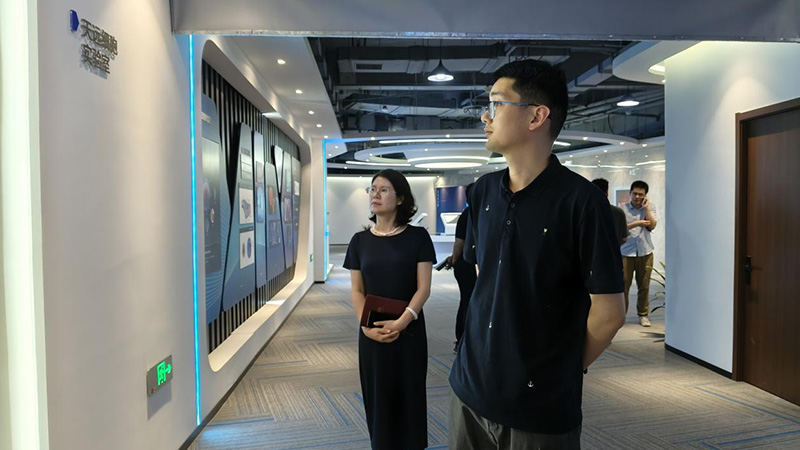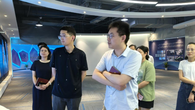 在公司行政总监竺优舞女士、财务总监艾学军先生以及办公室主任李文女士的陪同下,谢杰科长一行参观了公司的生产设施、研发实验室和产品展示区。