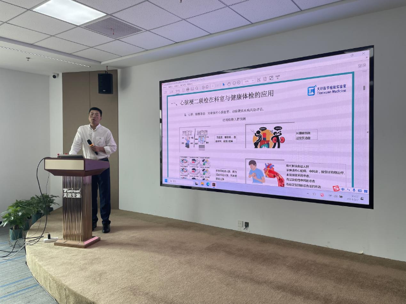 Director Yao Jincheng explained in detail several core laboratory testing projects of Zhejiang Tianyuan Biotechnology Co., Ltd. during the lecture, including a series of testing projects such as immunity, heart and brain infarction, DR70, and ctDNA. These projects represent the latest advances in biotechnology in disease diagnosis and health management.